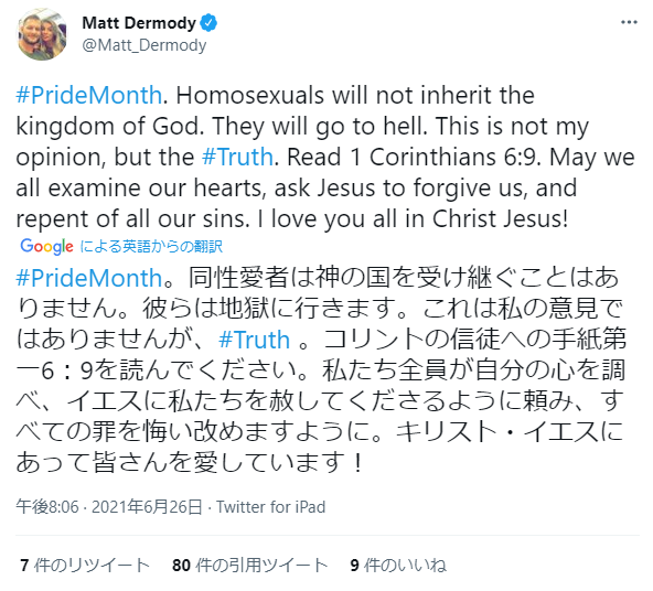 【悲報】西武選手、公式アカ「ゲイは地獄に落ちる。天国にはいけない」