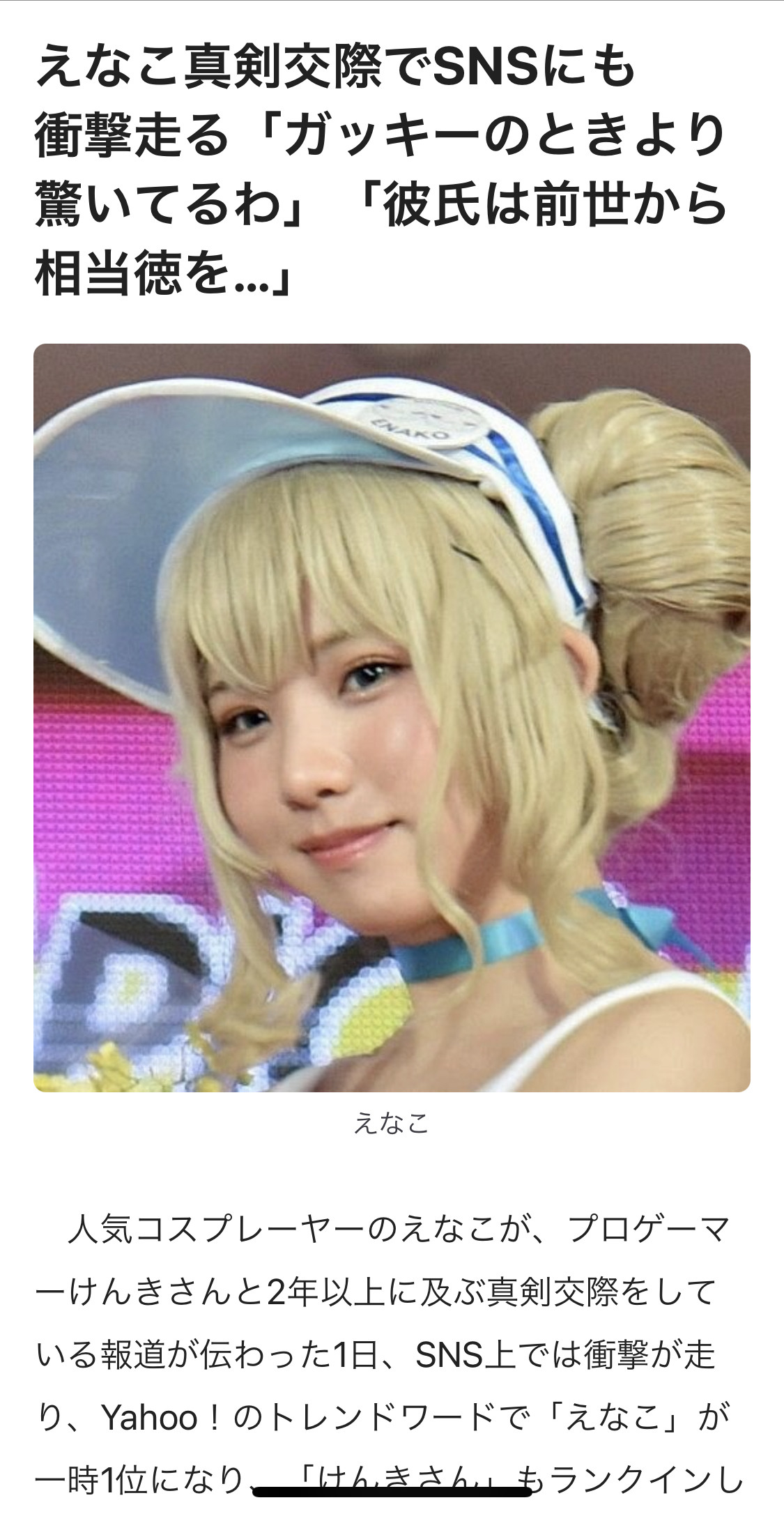 えなこさん 2年前から交際していたことが発覚wwwwwwwwwwww