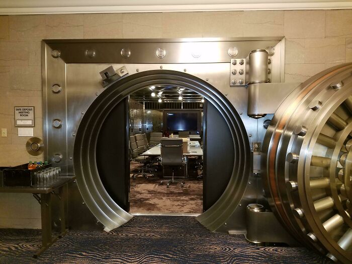 これはホテルに転用された元銀行で、金庫は会議室になっている