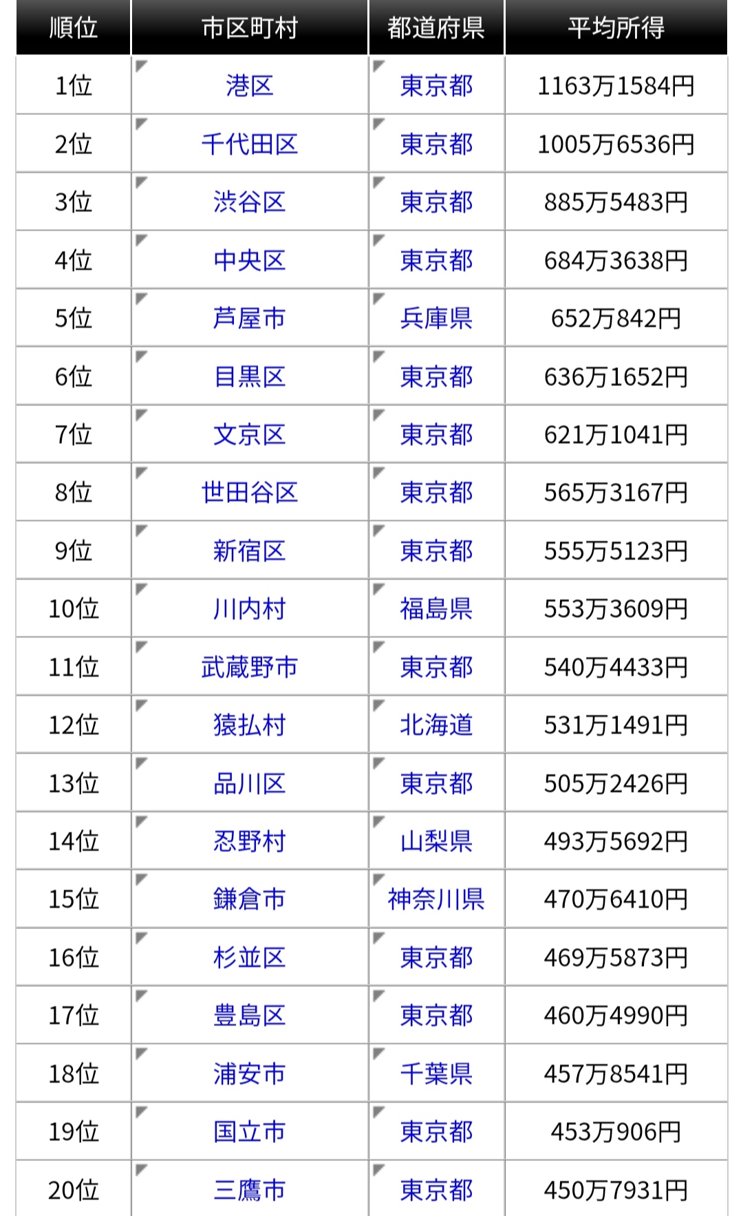 【画像】2020年の平均所得ランキング、謎の村が3つもランクインしてしまうwwwwwwwwwww