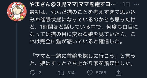【悲報】まんさん「娘が猫に取り憑かれた!😱」ちんさん「脳炎では?🤔」