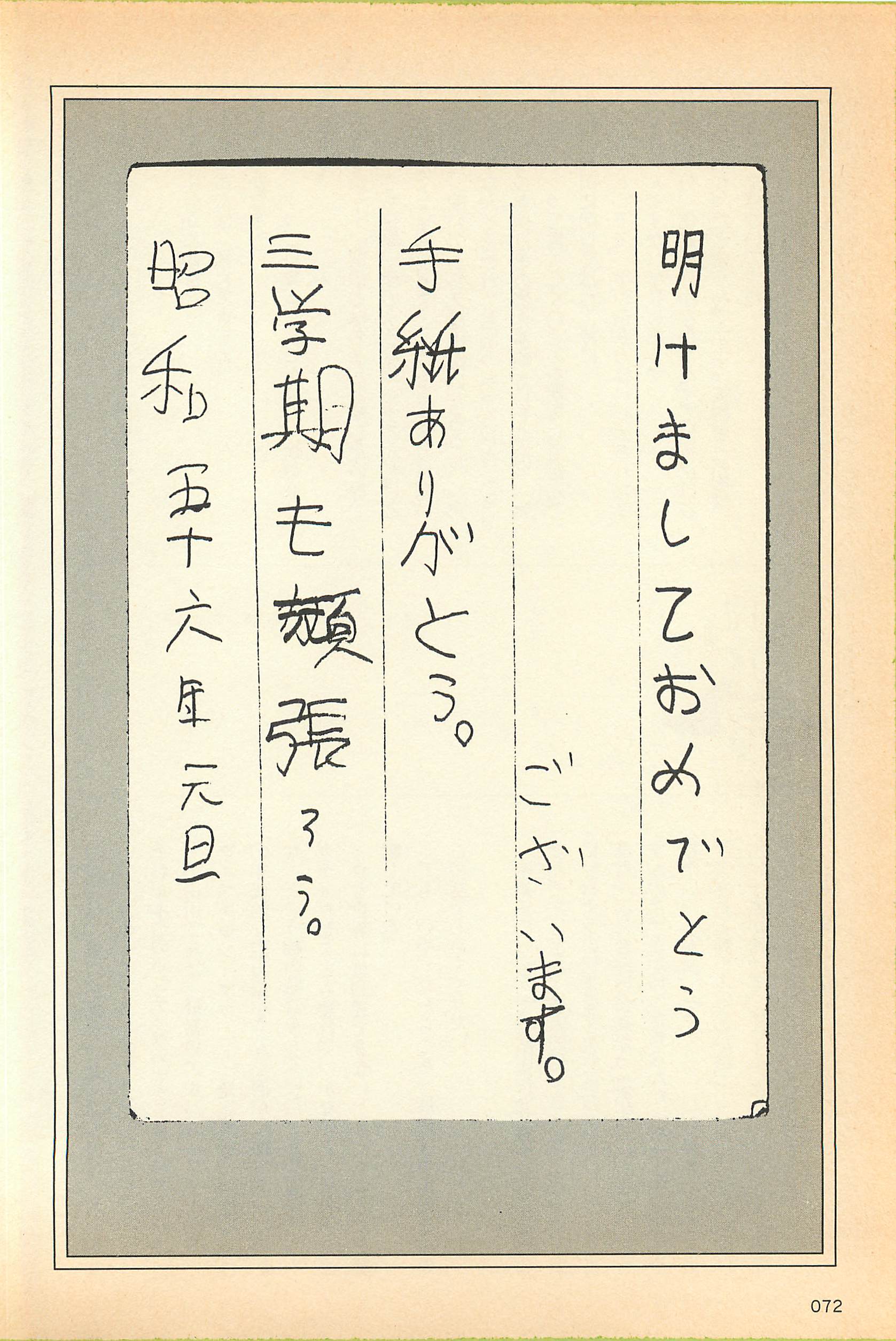 沢田君が母親と一生懸命に書いた年賀状の写真も掲載