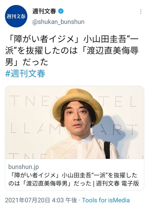 「障がい者イジメ」小山田圭吾“一派”を抜擢したのは「渡辺直美侮辱男」だった#週刊文春https://t.co/zwqhgTpu3G