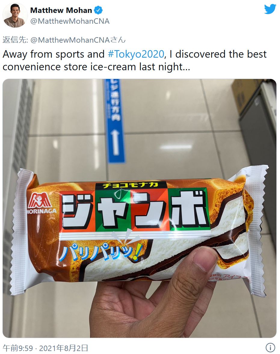 シンガポールの放送局「CNA」のジャーナリスト、マシュー・モハン氏は日本のコンビニで発見したアイスに感激したようだ。