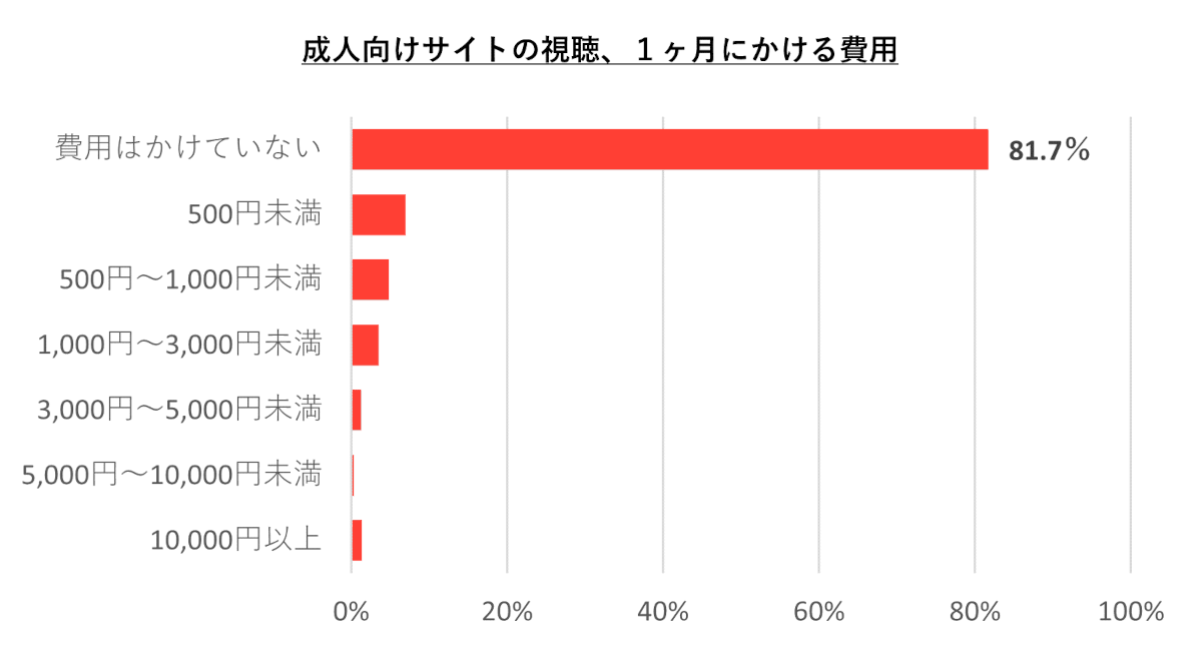 成人向けサイトの利用にあたって、一か月にどの程度の費用をかけているかを聞いたところ、「費用はかけていない」が81.7%と最も多い結果となりました。