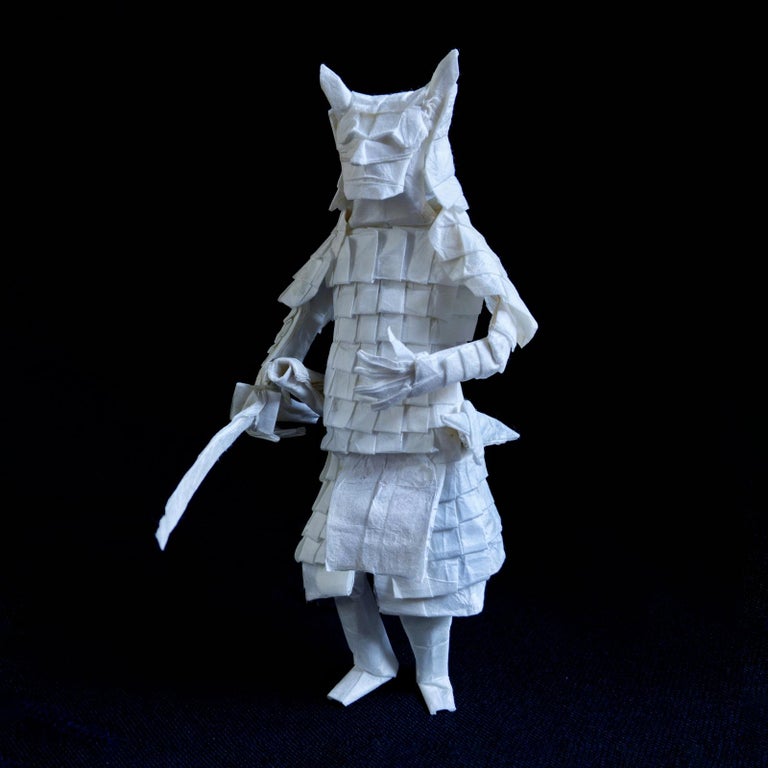 外国人が1枚の紙から作った折り紙のサムライ 凄すぎると話題に