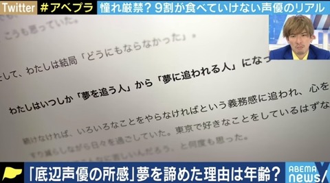 ホーム > ニュースetc > 女さん、声優を諦める「私達は買われなかった」 (※画像あり) 2021/09/11 1:風吹けば名無し:2021/09/11(土) 10:48:14.51 ID:WDz2eao50.net 続きを読む Source: ラビット速報 - ニュースetc