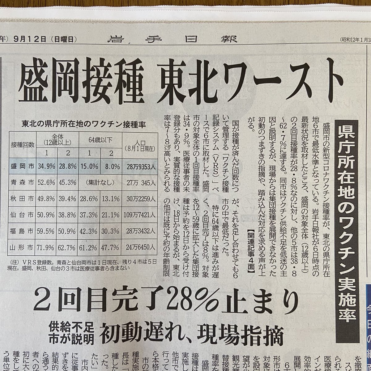 【悲報】岩手県盛岡市、ワクチン接種率18.1%の闇