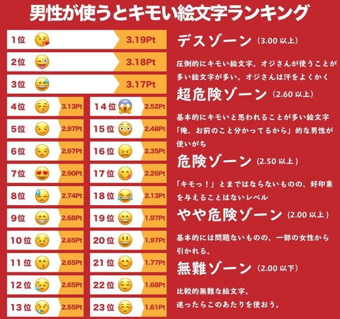 男が使うとキモイ絵文字ランキングwwwwwwwwwwwww