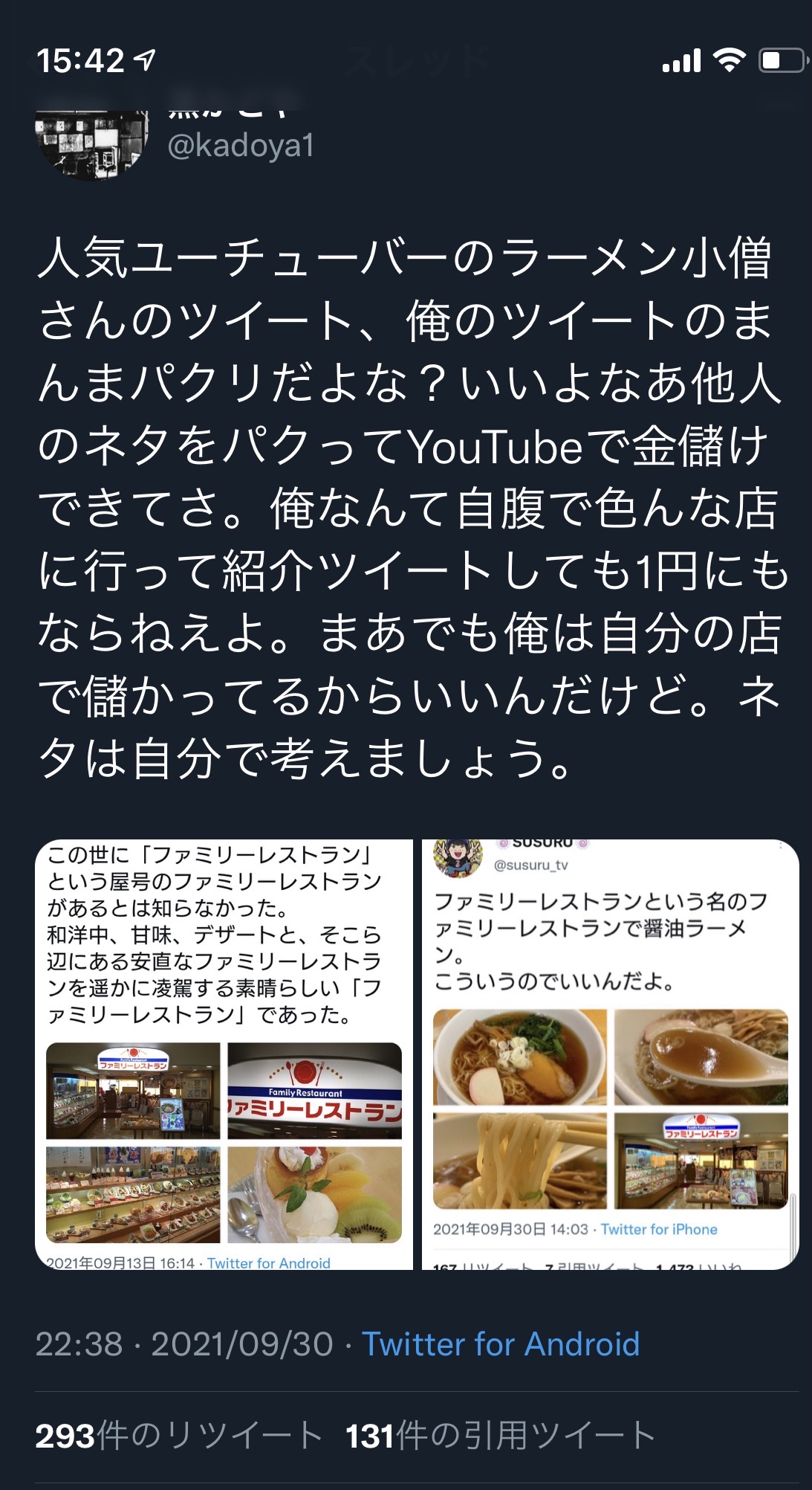 1枚目のツイートを自分のツイートのパクリだと騒ぐ