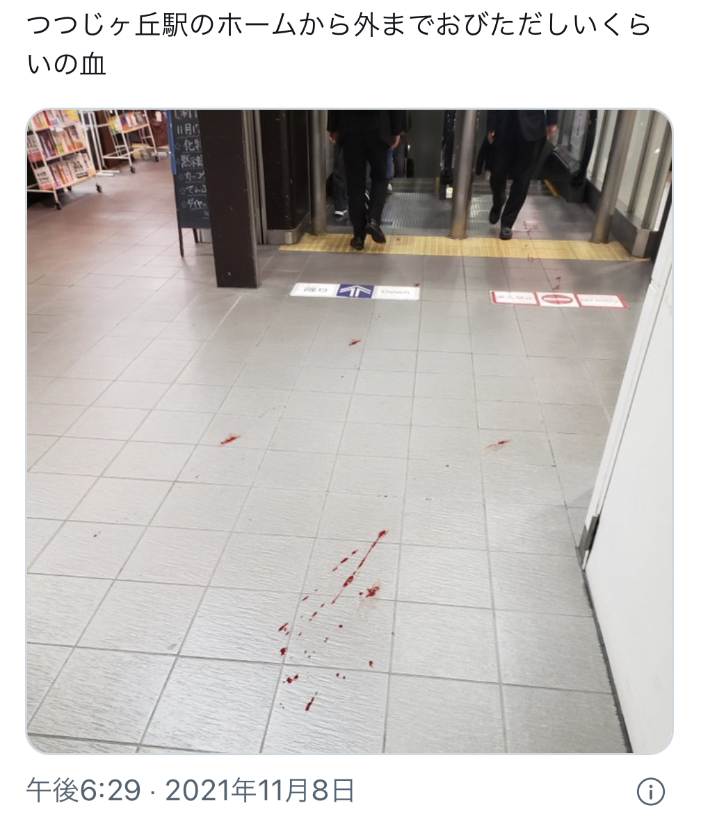 ホーム > ニュースetc > 【悲報】京王線、もうメチャクチャ。今度はつつじヶ丘駅で謎の血痕 (※画像あり) 2021/11/08 1:風吹けば名無し:2021/11/08(月) 21:27:23.79 ID:2PzWI3z70.net 2:風吹けば名無し:2021/11/08(月) 21:27:39.72 ID:2PzWI3z70.net どんな路線やねん 続きを読む Source: ラビット速報 - ニュースetc