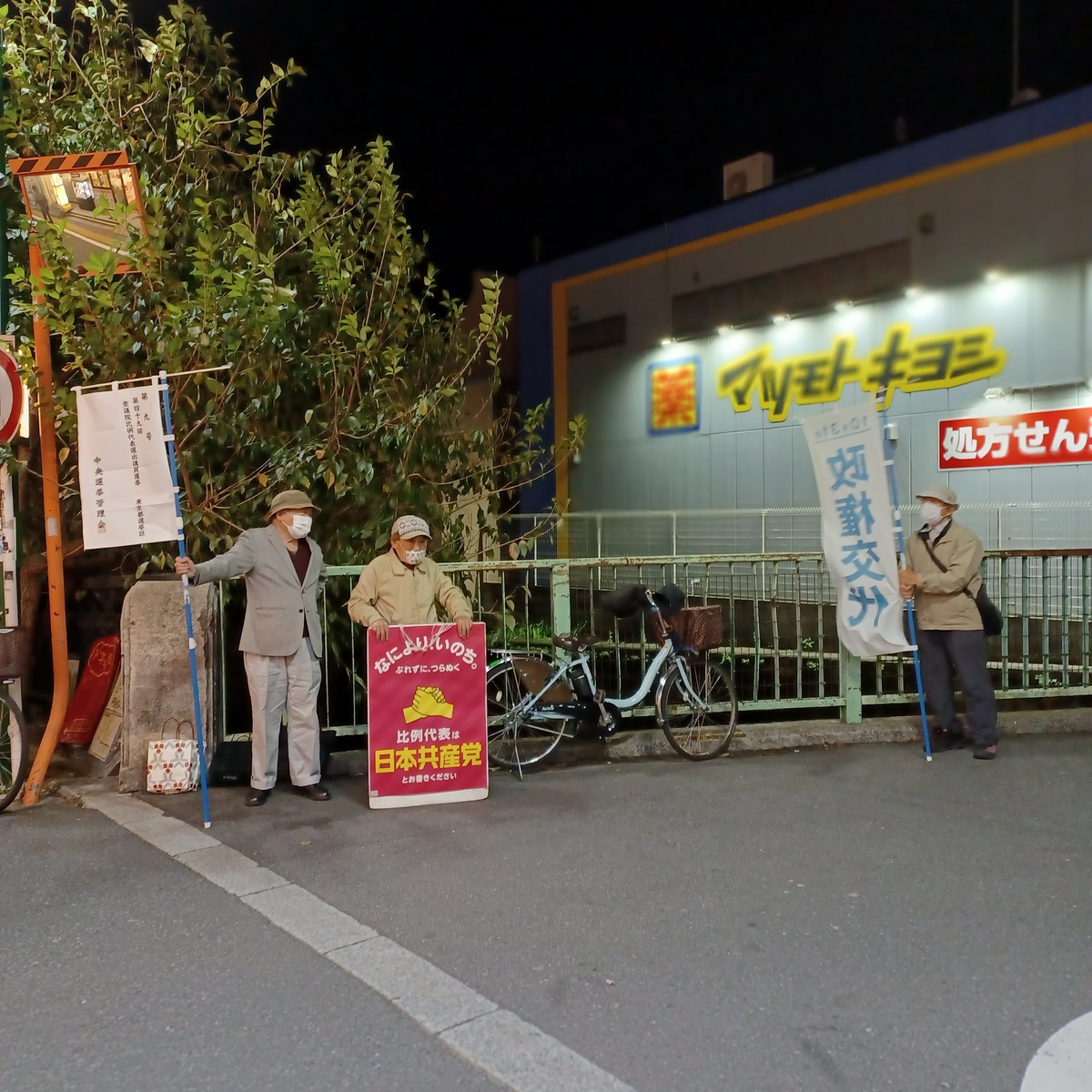 中井駅で、13人で街頭宣伝。大山とも子都議と私以外、全員70代から90代。道行く人たち気づいてほしい。もうさすがに自分を甘やかしても良い年齢になった人たちが、夜、寒い中、必死で政権交代を訴えている。それくらい、今のこの国の政治がおかしくなってるってこと。