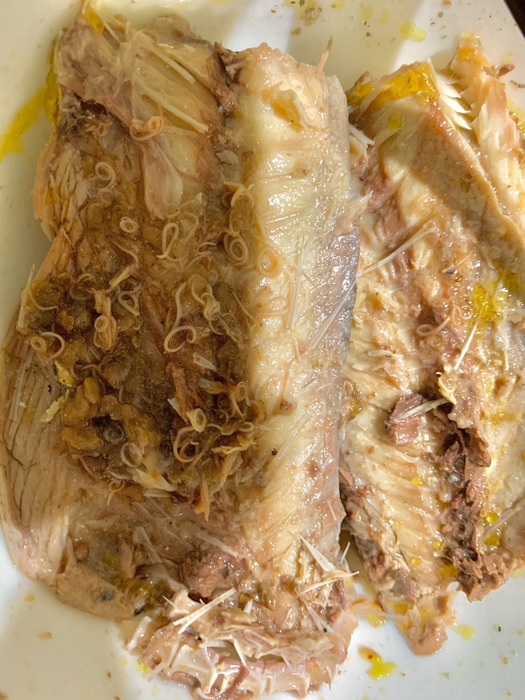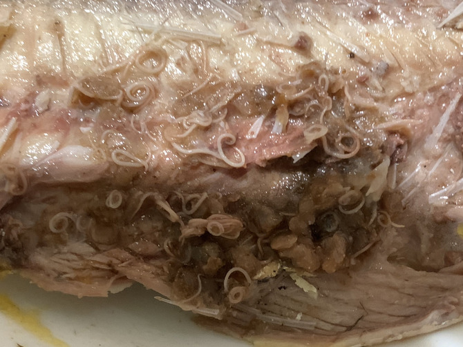 鯖缶食べようとして身を開いたら恐ろしいほどアニサキスいてドン引きしてしまった