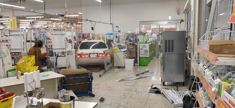 【画像】スーパーに車が突っ込む。お前らが想像する2倍は突っ込んでるwwwwwwww