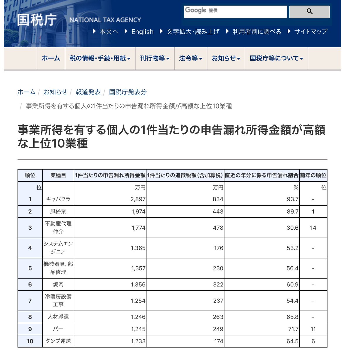 ホーム > ニュースetc > 【画像】国税庁「脱税額が多い職業ランキング発表するで~」1位はやっぱりアイツらだった 2021/12/14 1: 風吹けば名無し 2021/12/11(土) 16:05:51.19 ID:acrfn8XQa.net 続きを読む Source: 妹はVIPPER - ニュースetc