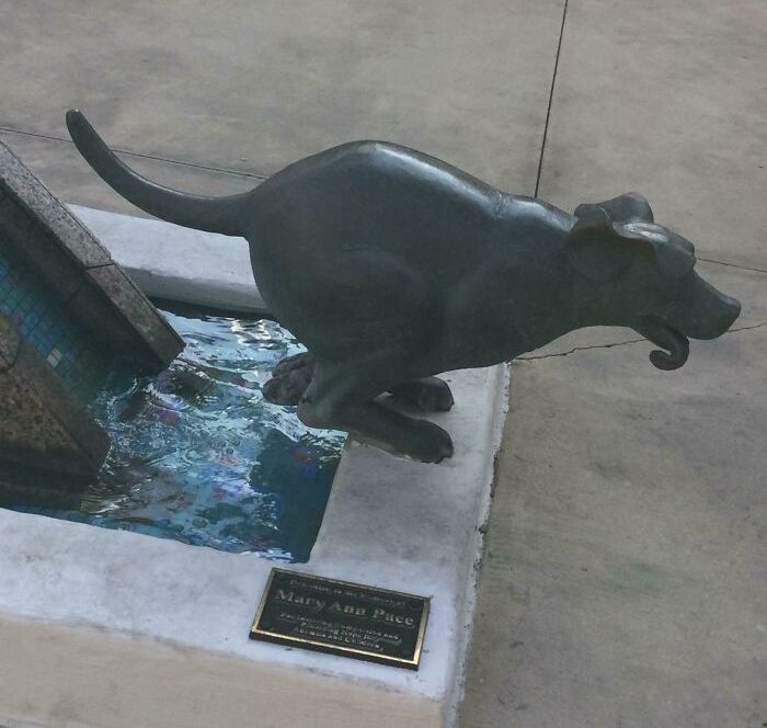この犬の像は走る姿をイメージして作られたらしい