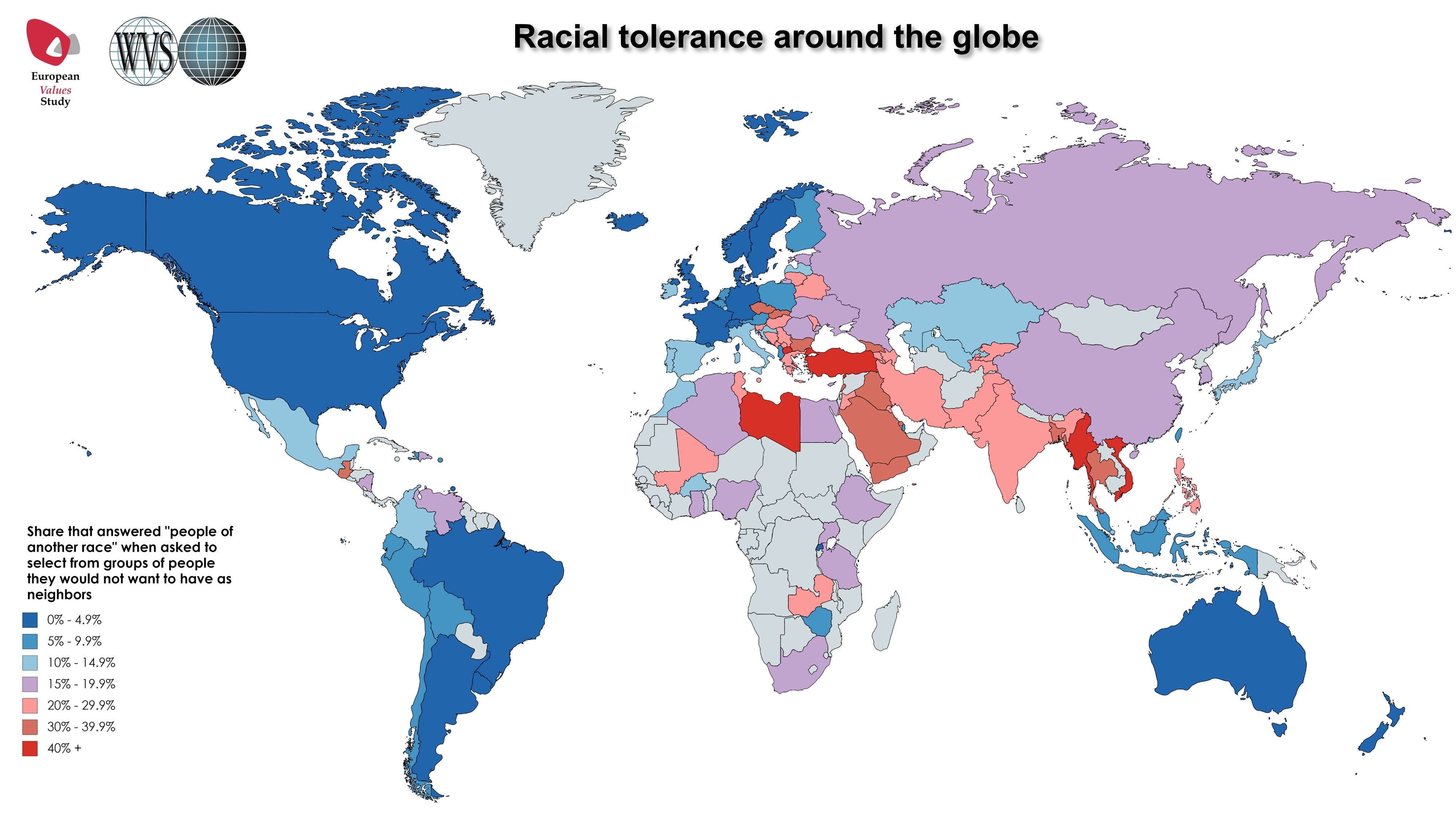 外国人「これが人種差別的な国&差別的じゃない国マップらしい」