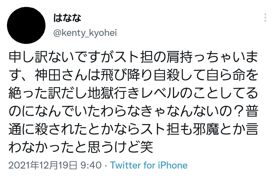 【悲報】ジャニオタ「神田沙也加さんは地獄行き。普通に殺されたとかなら邪魔とか言わなかった。」