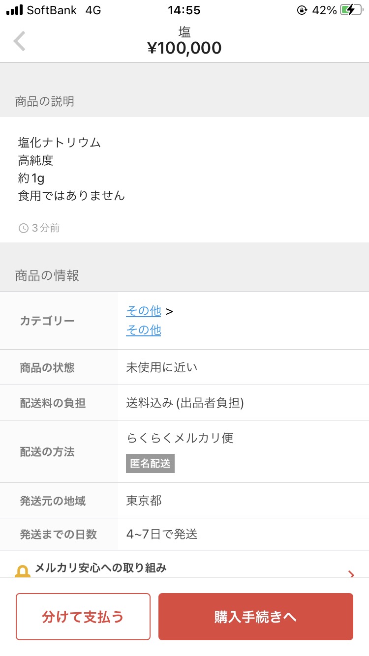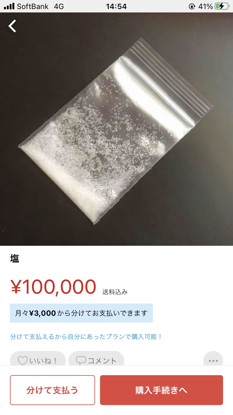 『塩 (¥100,000)』 フリマアプリ「メルカリ」で販売中♪ https://item.mercari.com/jp/m87288168402