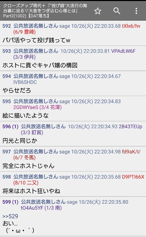 ホーム > ニュースetc > 【画像】ここ最近男性配信者に投げ銭をする女性が急増、社会問題に 入院をする人も 2021/12/26 1:風吹けば名無し:2021/12/26(日) 14:56:07.00 ID:YeNPDS7p0.net ソースはNHK 反応 2:風吹けば名無し:2021/12/26(日) 14:56:38.58 ID:YeNPDS7p0.net もう終わりだよこの世の中 続きを読む Source: ラビット速報 - ニュースetc