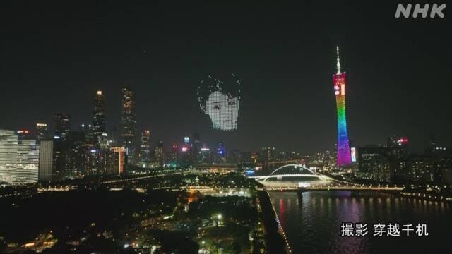 中国南部の広州で行われたドローンを使った光のショーに、北京オリンピックで活躍する中国の選手とともに外国人選手で唯一、フィギュアスケートの羽生結弦選手の顔が登場し、話題になっています。広州のシンボルになっているタワーの近くで行われたショーは、14日のバレンタインデーに合わせて北京オリンピックの選手たちにエールを送ろうと、地元政府が企画したものです。