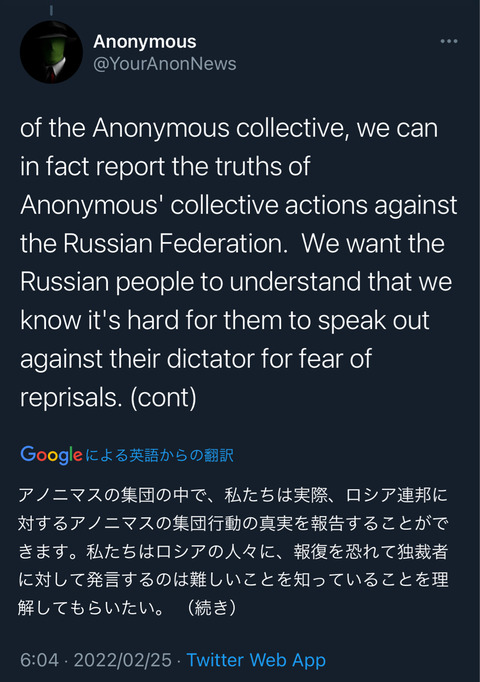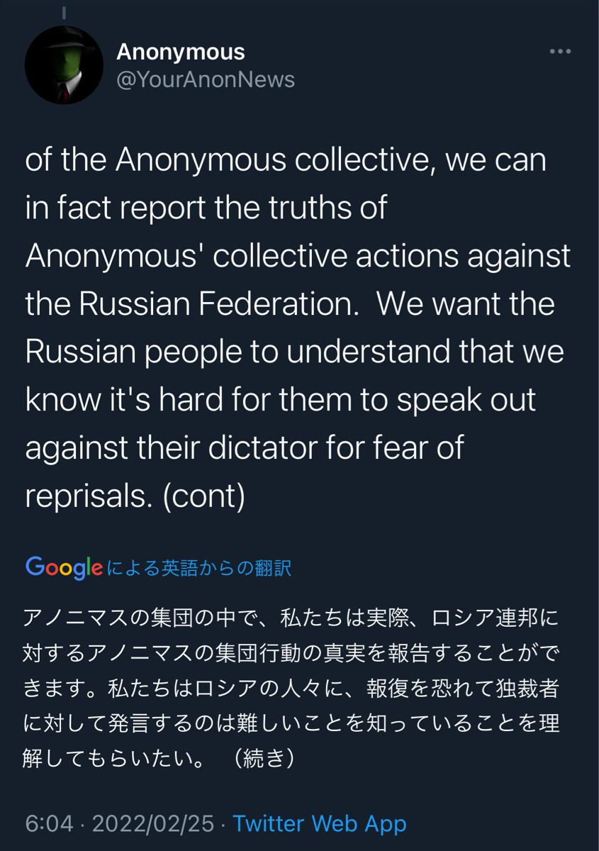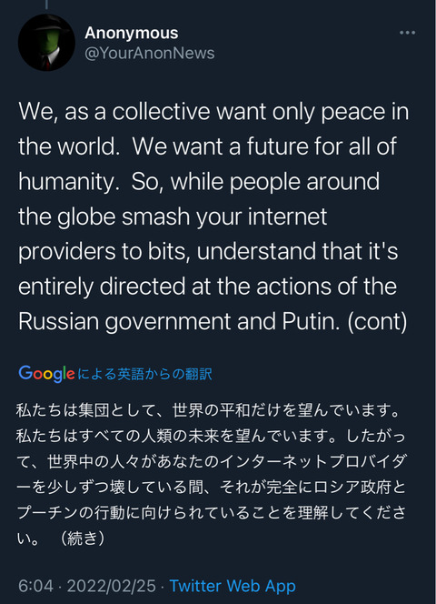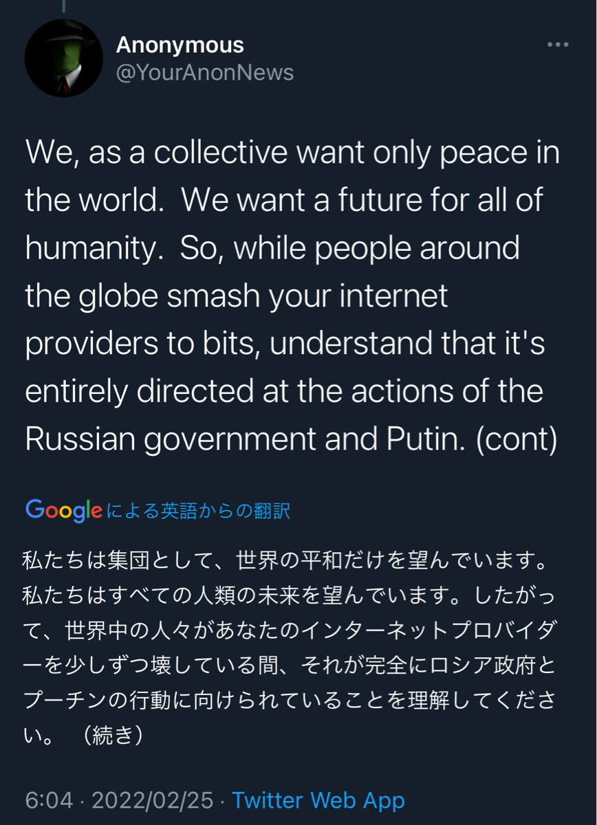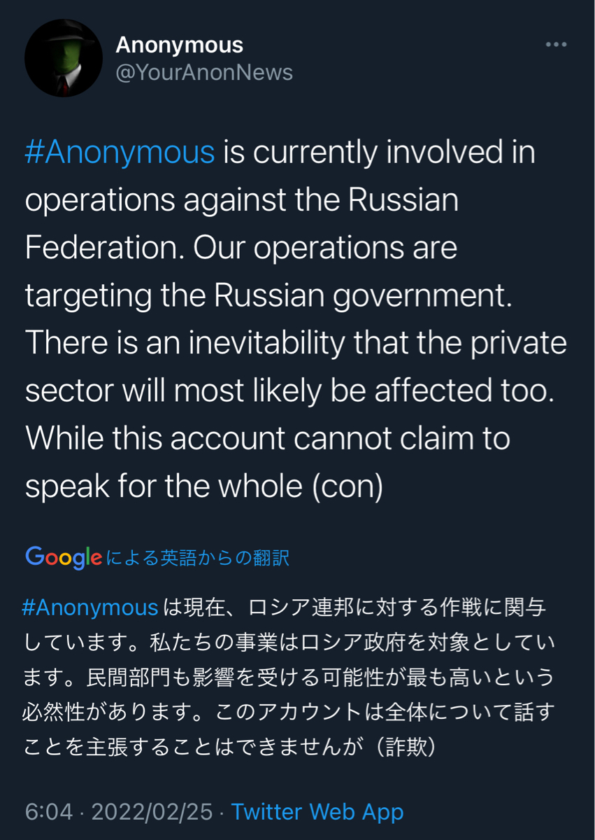 【朗報】世界的ハッカー集団『Anonymous』さん、ロシアに宣戦布告