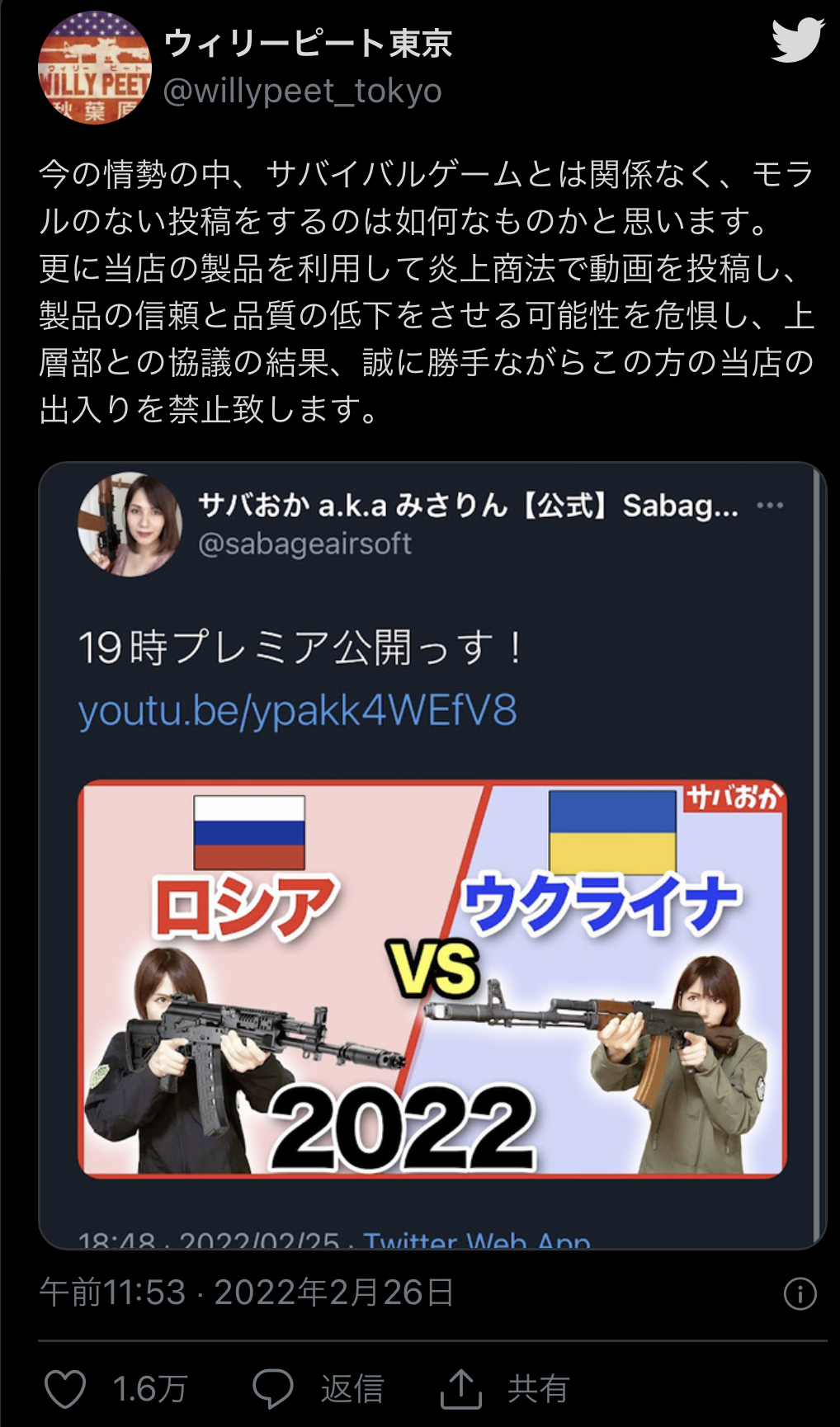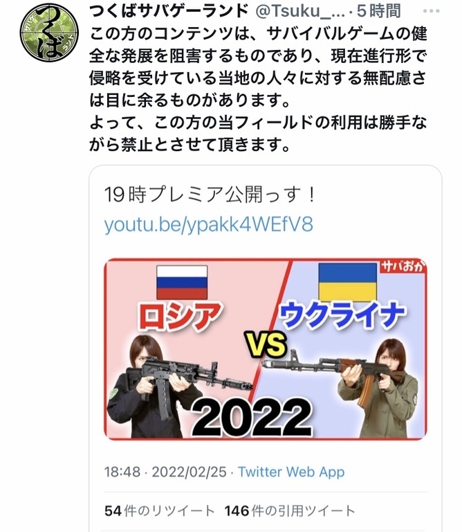 【悲報】サバゲー女子Youtuber、不謹慎ネタで出禁を食らう