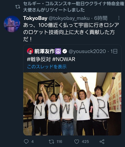 【悲報】前澤友作、ウクライナ問題に首を突っ込み終わるwwwwwwwwwww