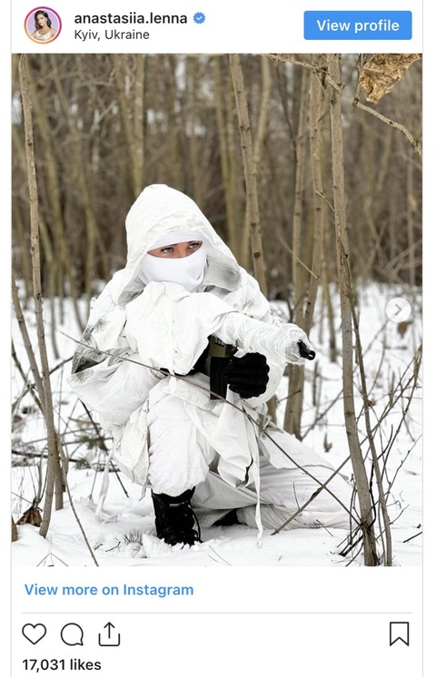 レナさんは銃を手にする自身の姿をインスタグラムに投稿しており、そこには「侵略の意図を持ってウクライナの国境を越える者は殺す」と書かれている。