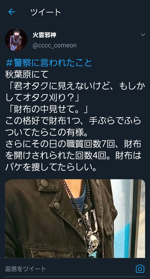 陽キャ「警官にオタク狩りしてるの?と質問された。この格好じゃ間違えられるのも無理ないかな」 (※画像あり)
