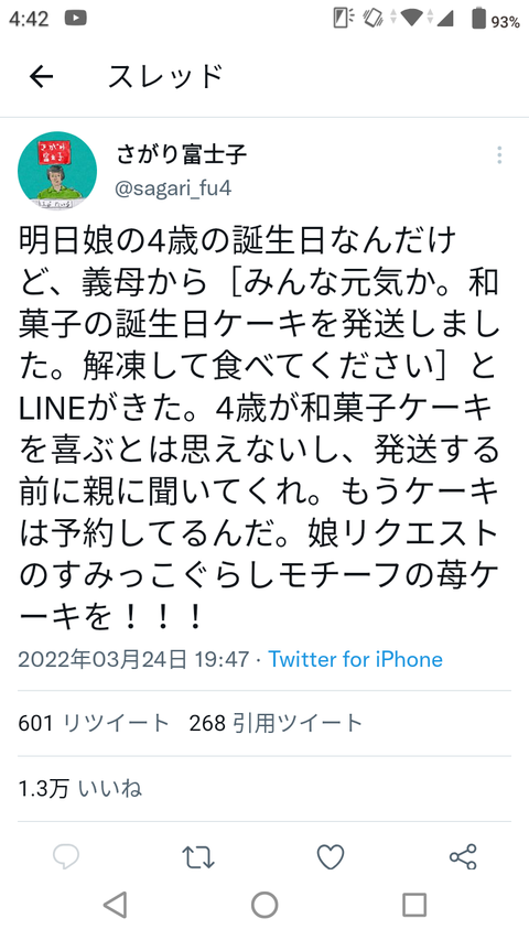 【画像】ま~ん(笑)「義母が娘の誕生日に和菓子ケーキ送ってきた。子供が和菓子なんて食うわけないだろ。」
