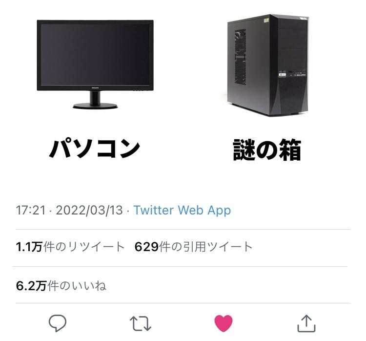 ホーム > ニュースetc > 【悲報】若者さんパソコンの横に置いてある謎の箱に困惑してしまう😭 2022/04/21 1: 風吹けば名無し 2022/03/24(木) 06:20:37.46 ID:/Lt88iZUM.net 3: 風吹けば名無し 2022/03/24(木) 06:21:07.61 ID:MeM6XsHTd.net 頭悪そう 続きを読む Source: 妹はVIPPER - ニュースetc