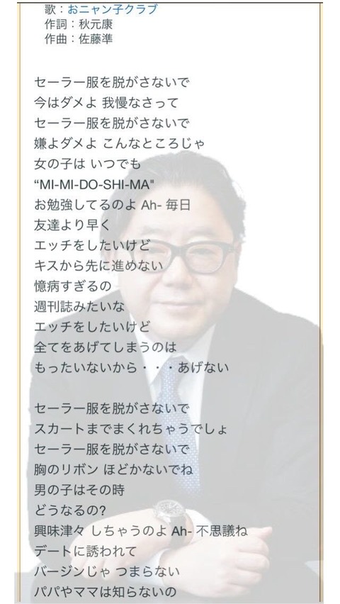 テゴリーで選出した『セーラー服を脱がさないで』だ。《セーラー服を脱がさないで 今はダメよ 我慢なさって セーラー服を脱がさないで 嫌よダメよ こんなところじゃ》
