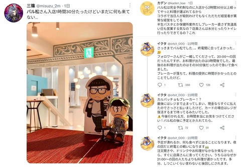 【悲報】女オタクさん達「おそ松さんコラボ店」に入店するも、料理が運ばれるまで2時間くらいかかってブチギレwwwwwwwwww