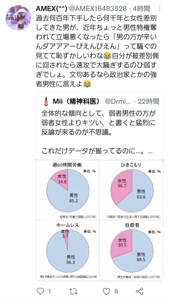ホーム > ニュースetc > 【画像】精神科医「女より弱者男性のほうがつらいですよね?」→女性が華麗に論破してしまう 2022/05/27 1: 風吹けば名無し 2022/05/26(木) 15:51:05.28 ID:M24svpwt0.net 論破されたわ… 続きを読む Source: 妹はVIPPER - ニュースetc