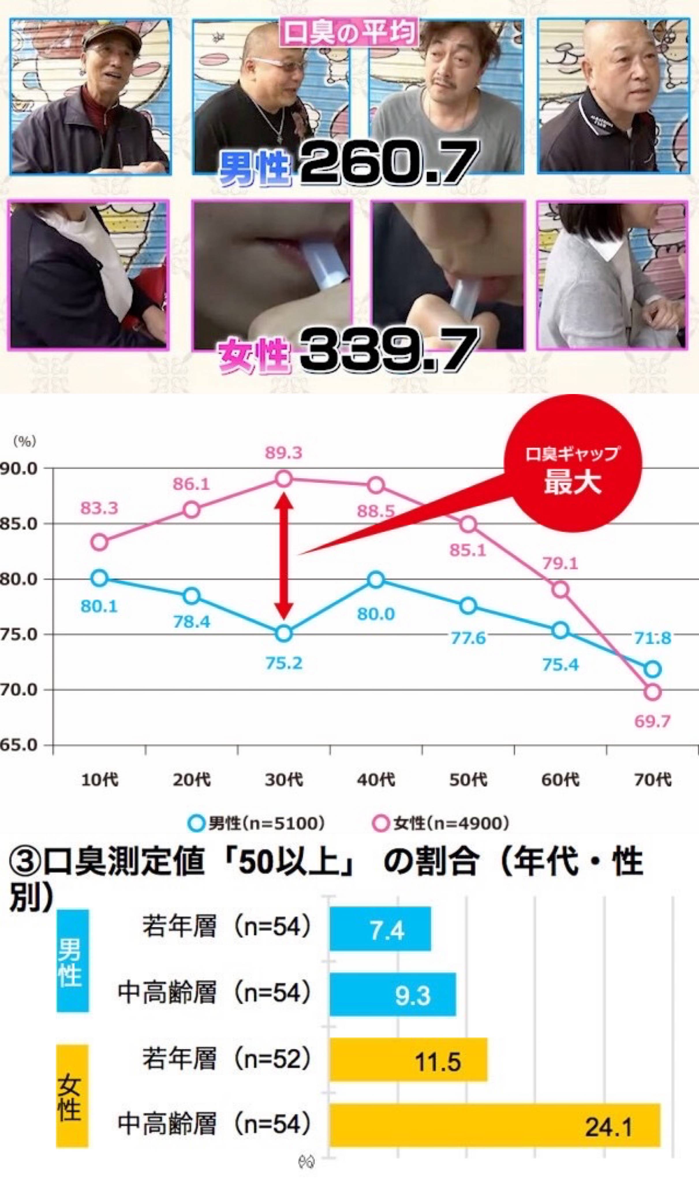 【画像】男と女の「口臭」の比較データがこちらwwwwwwwwwwwwwwwwwwwwww