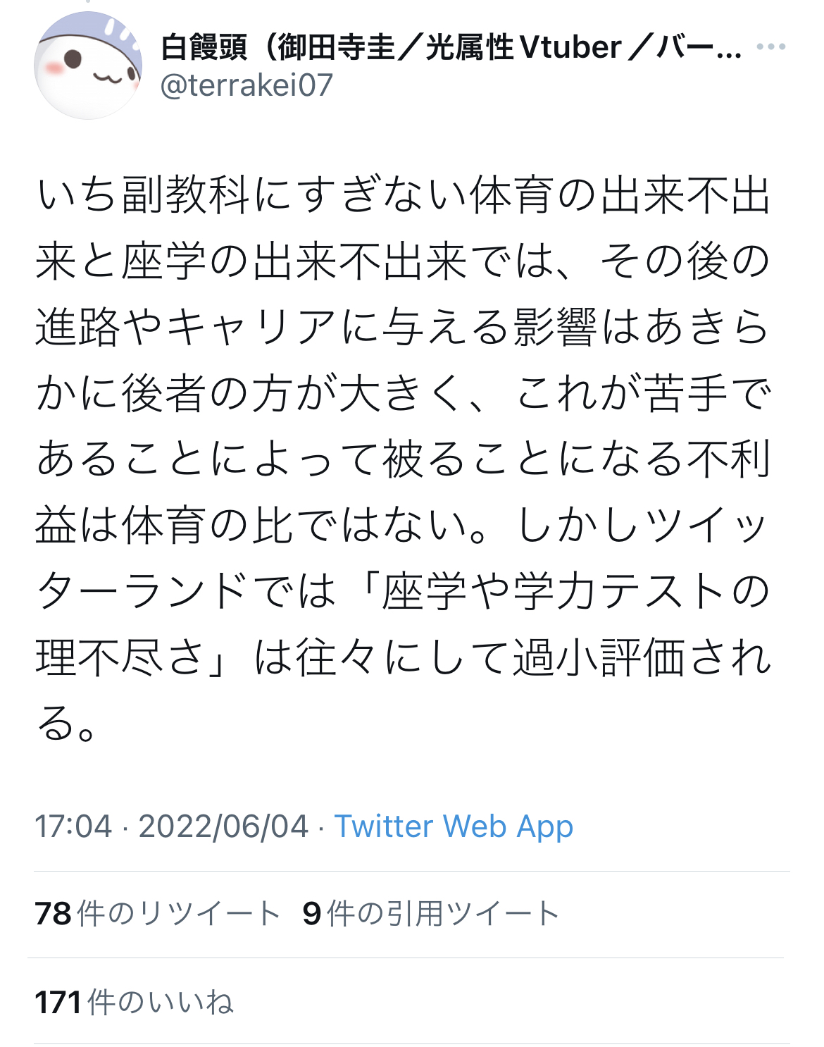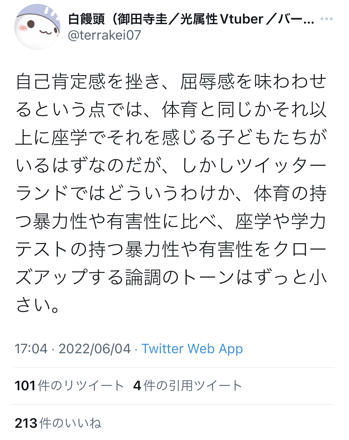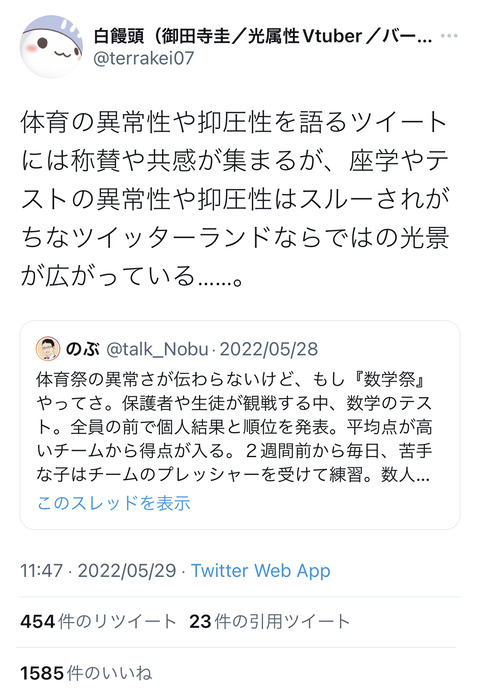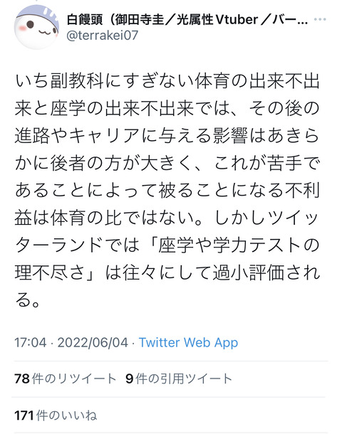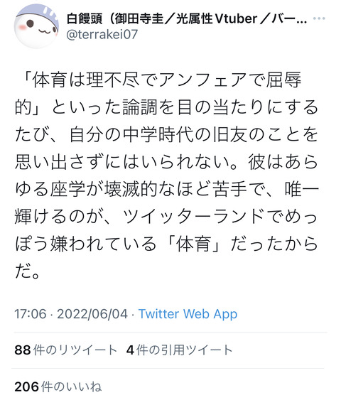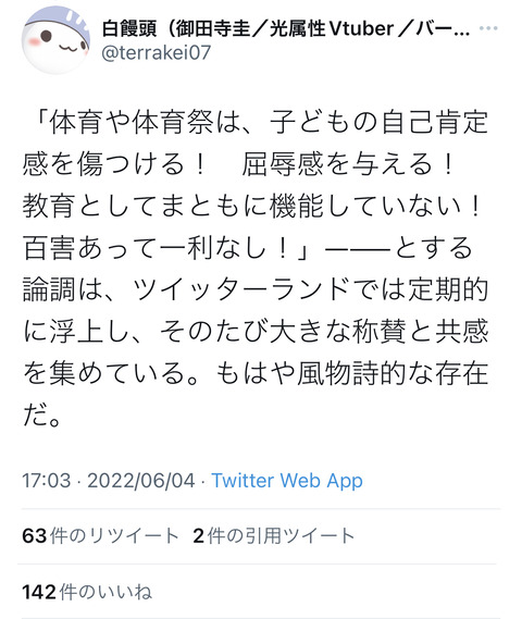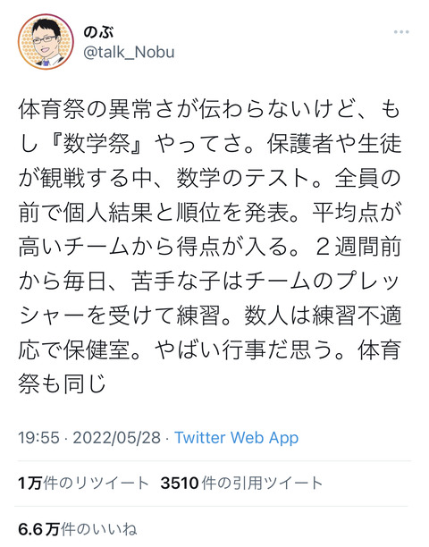 Twitter「体育は子どもの自己肯定感を傷つける?学力テストの方がよっぽど暴力的ですよ」