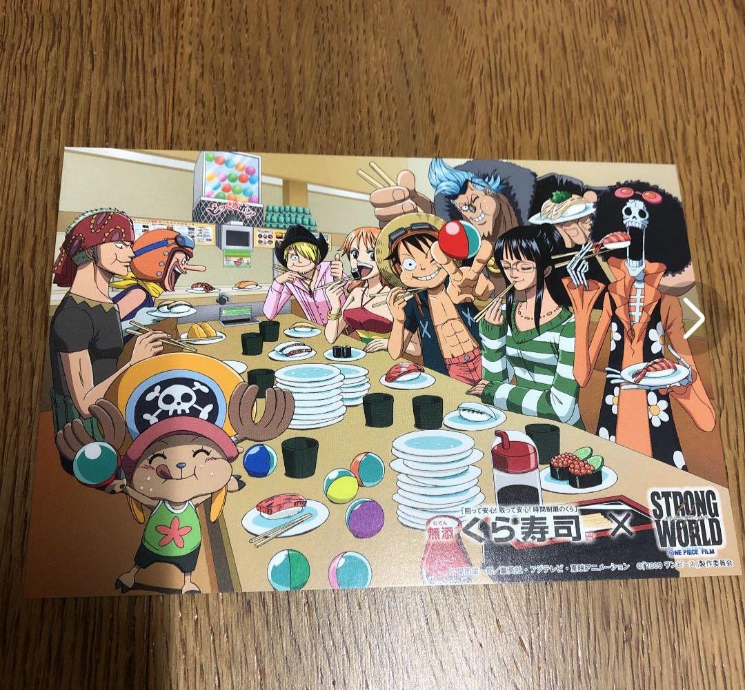 【画像】ルフィ「くら寿司食うぞー!女2人は俺の隣に座れ!フランキーはデカくて邪魔だから他行け!」