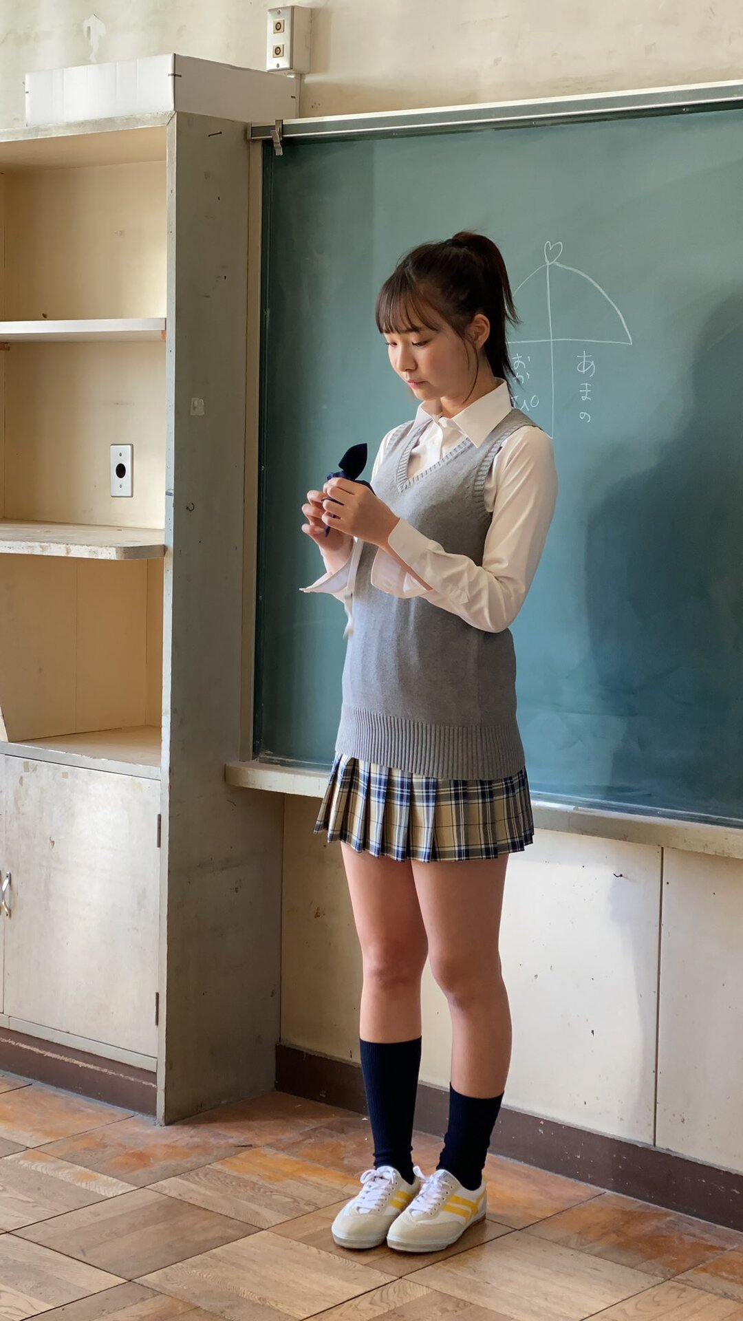 【画像】現役JK、教室で脱いでお○ぱいを見せてしまう