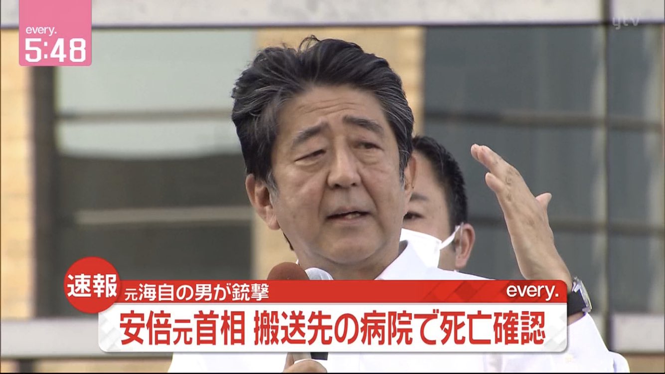 安倍晋三元首相が奈良市で街頭演説中、男に銃撃された事件で、病院に搬送された安倍元首相の死亡が確認されました。警察によると、8日午前11時半ごろ、奈良市内で街頭演説をしていた安倍元首相が銃撃され、山上徹也容疑者(41)が殺人未遂の現行犯で逮捕されました。安倍元首相は、ヘリコプターで救急搬送されていましたが、午後5時過ぎ、病院で死亡が確認されました。(Yahoo:関西テレビ)