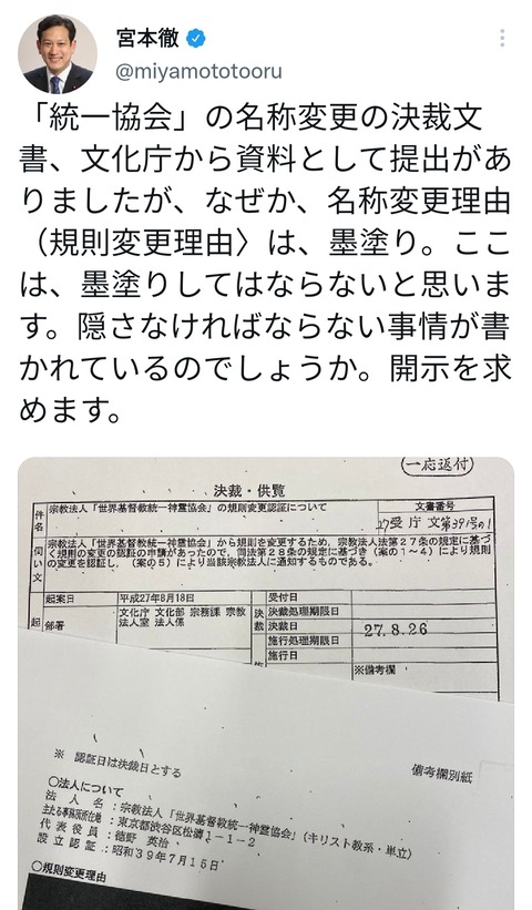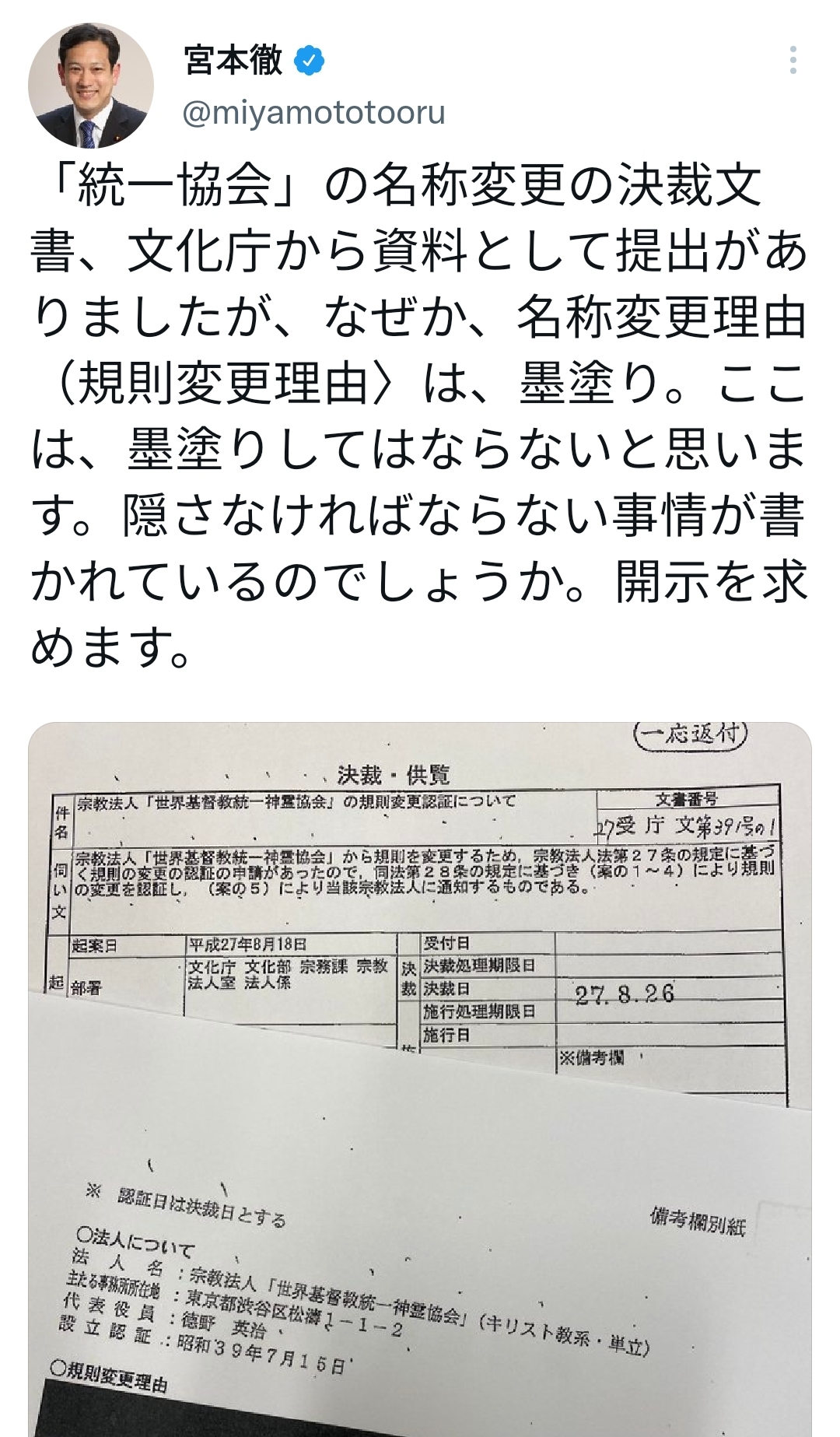 【悲報】文科省「統一教会は████を理由に名称を変えました」隠された真相wwwwwwwwww