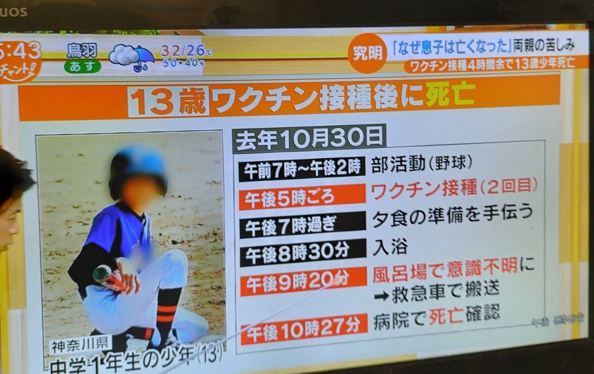 ホーム > ニュースetc > 【悲報】中学一年生、ワクチン接種4時間後に死亡 2022/08/13 1: 風吹けば名無し 2022/08/12(金) 23:33:17.42 ID:2mO2l1GA0.net 続きを読む Source: 妹はVIPPER - ニュースetc