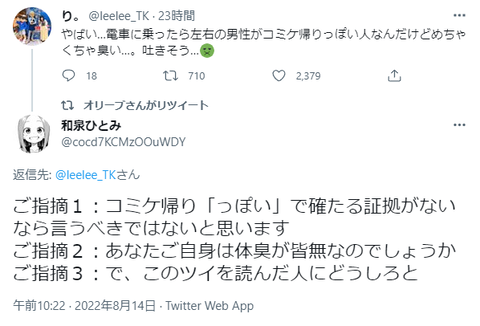 【悲報】コミケ帰りのオタク、臭すぎて炎上