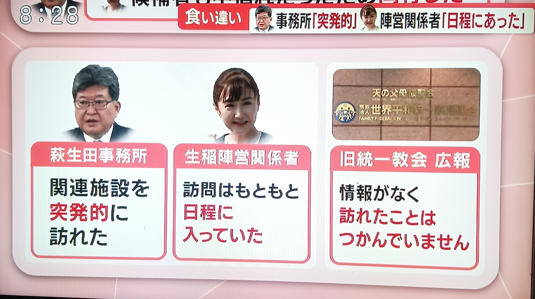 【画像】萩生田「突発的に訪れた」生稲「日程に入っていた」統ー教会「誰も訪れていない」
