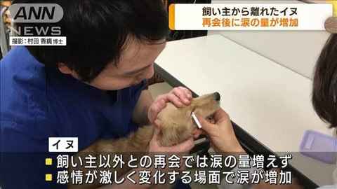 飼い主以外の他の人と再会した時には涙の量は増えず、特別な関係性のある飼い主との再会のようなイヌの感情が激しく変化する場面において、涙の増加が認められたということです。