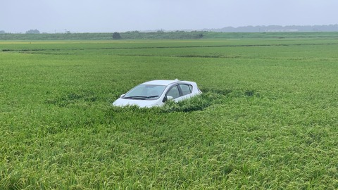19日午前8時ごろ、都城市高城町穂満坊の農地で水に浸かった車両の中から60代の