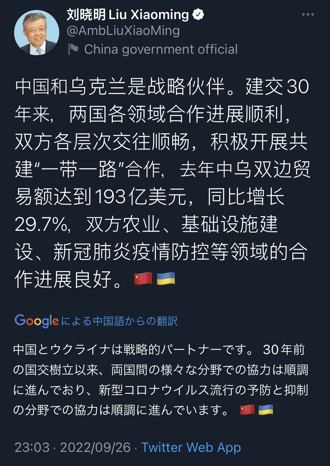 【画像】中国外交官「我々はウクライナとパートナーです。」←大炎上www