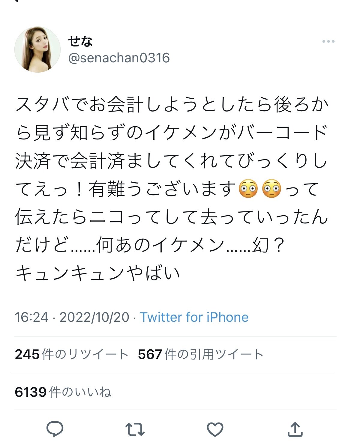 ホーム > ニュースetc > 【画像】美女「スタバで会計しようとしたら見知らぬイケメンが払ってくれた。キュンキュンやばい😍」 2022/10/22 1: 風吹けば名無し 2022/10/21(金) 07:09:54.38 ID:1CNHRQGx0.net いいね! 2: 風吹けば名無し 2022/10/21(金) 07:10:09.45 ID:1CNHRQGx0.net ワイも真似するわ 続きを読む Source: 妹はVIPPER - ニュースetc