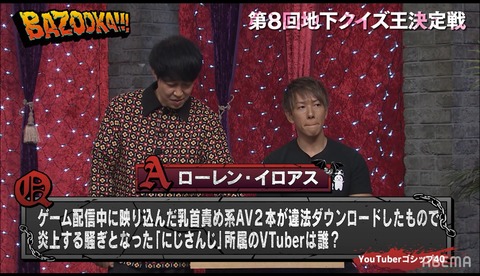 【画像】Vtuberさん、とうとうテレビのクイズ番組に出題されるほど世間に浸透してしまうw w w