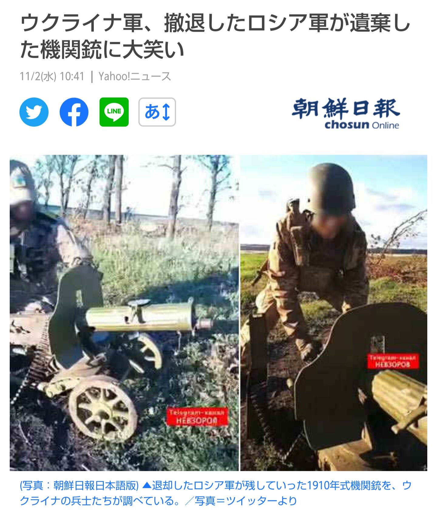 ホーム > ニュースetc > 【悲報】ウクライナ軍「ロシア軍の機関銃古すぎて草」 2022/11/05 1: 風吹けば名無し 2022/11/02(水) 12:44:31.70 ID:n8FqcUQUr.net 日露戦争かな 続きを読む Source: 妹はVIPPER - ニュースetc